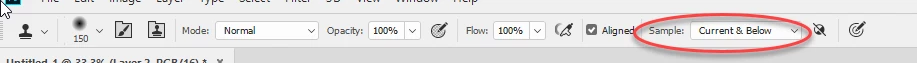 I am a total beginner to Photoshop. I have 2 photos, and have cut out from 1 a head (with a nice smile!) using the lasso tool and pasted it into the other photo. I lined it up, but am unable to use the clone tool to blend around the sharp edges. It works on either the original background or on the copied and pasted head but not on the outline between the two. If I select All Layers, then the clone tool won't work.