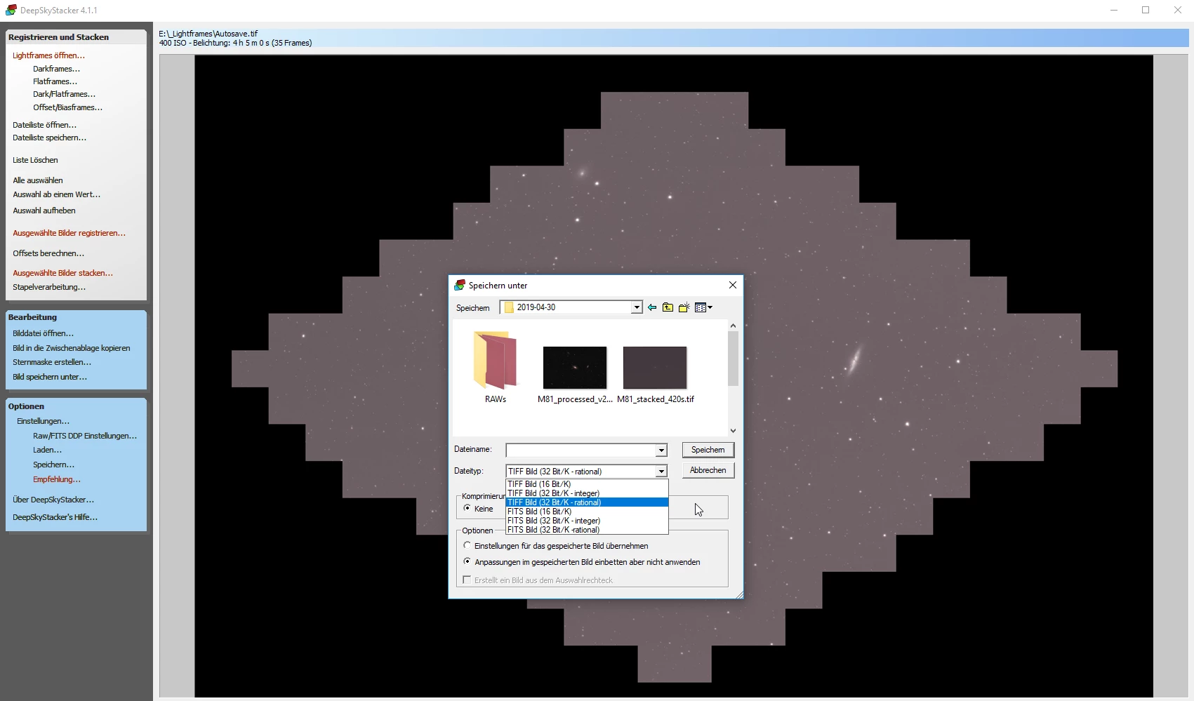 I am into astrophotography and therefore I work on large TIFF files. The normal file has 12989x8709 pxs and is 32bit (file-size app. 1 GB).
