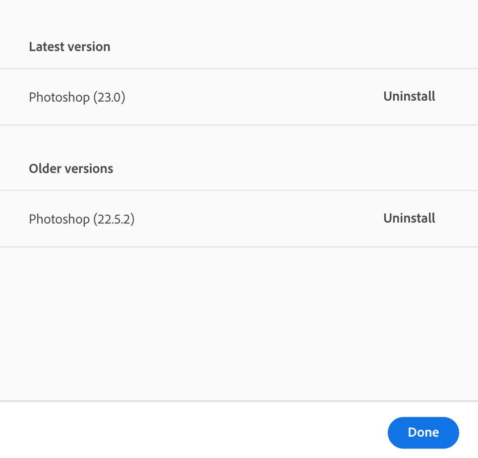 I need to install the 21 version of photoshop. Usually there was the possibility to install an prior version through the Creative Cloud. But these option is not longer available. Did Adobe removed it? How can i get the prior version now?