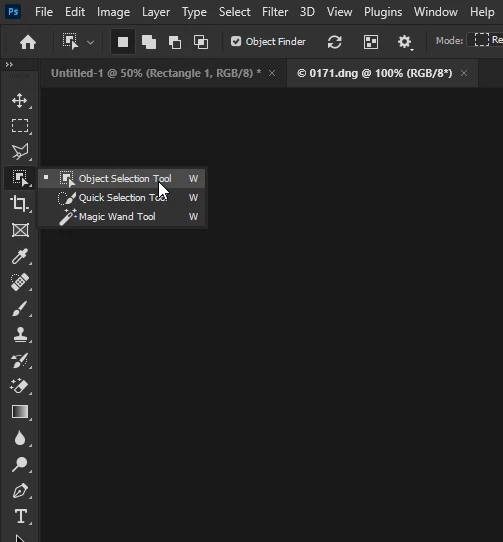 There is no 'Object Selection tool' on the toolbar.