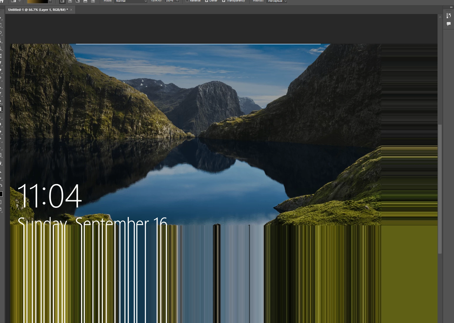 Within PS, unless I keep the canvas bumped up against the top and left edge, it seems to take the bottom and right edges of the canvas and blow those pixels out to infinity. Below is a windows lock screen image I grabbed of google to demonstrate what I am talking about. If I scroll the canvas beyond a certain point... boom.