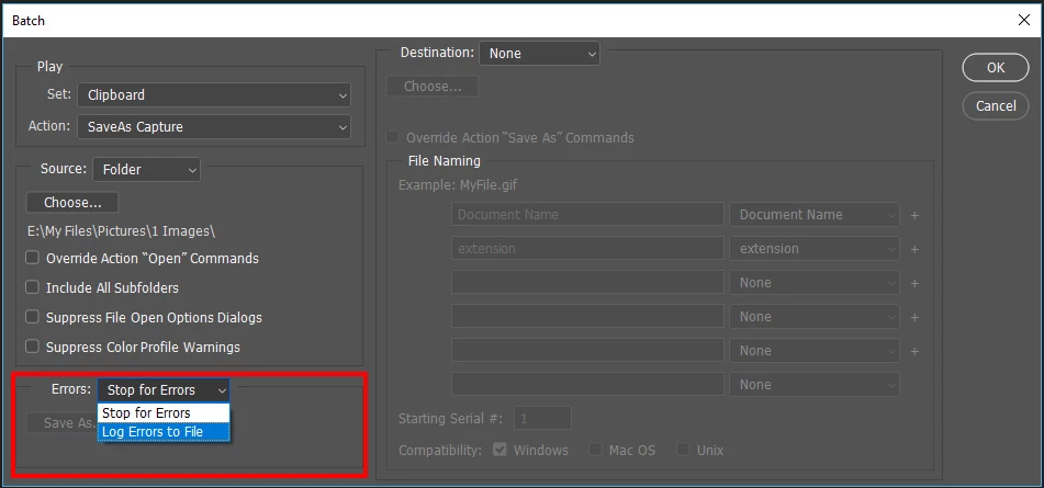 The final step of one of my actions is to Close the file, when I automate this action (File, Automate, Batch), the close action doesn't run. Resulting in each of my files remaining open throughout the entire process, which tanks my PC. Why is this, and how can I fix it?