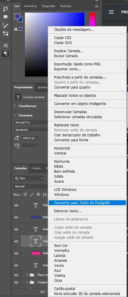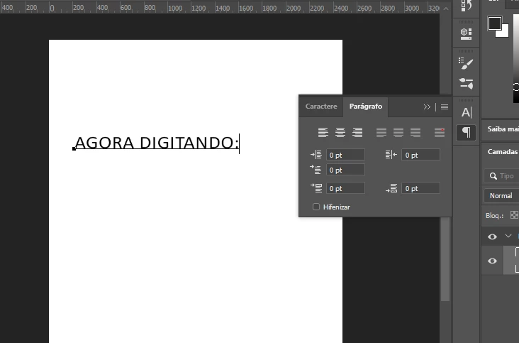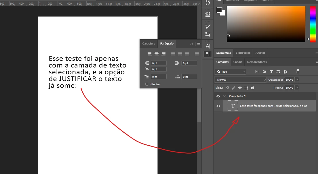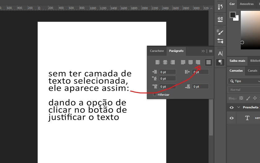 No Programa Adobe PhotoShop, a opção de deixar o texto com alinhamento JUSTIFICADO não funciona.
