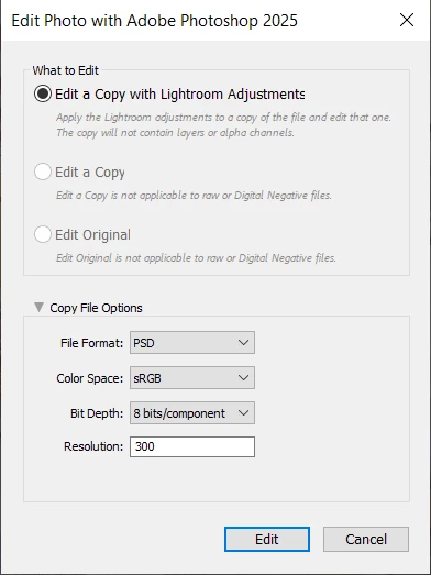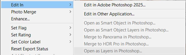 Open as layers in Photoshop from Lightroom Classic not working