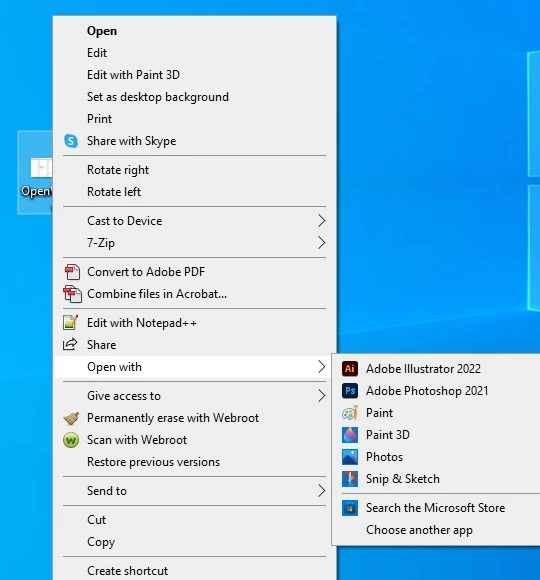 When I right click to "open with" PS 2022 is not an option, and when I select choose app, and find PS 2022, it's still opening in PS 2021.