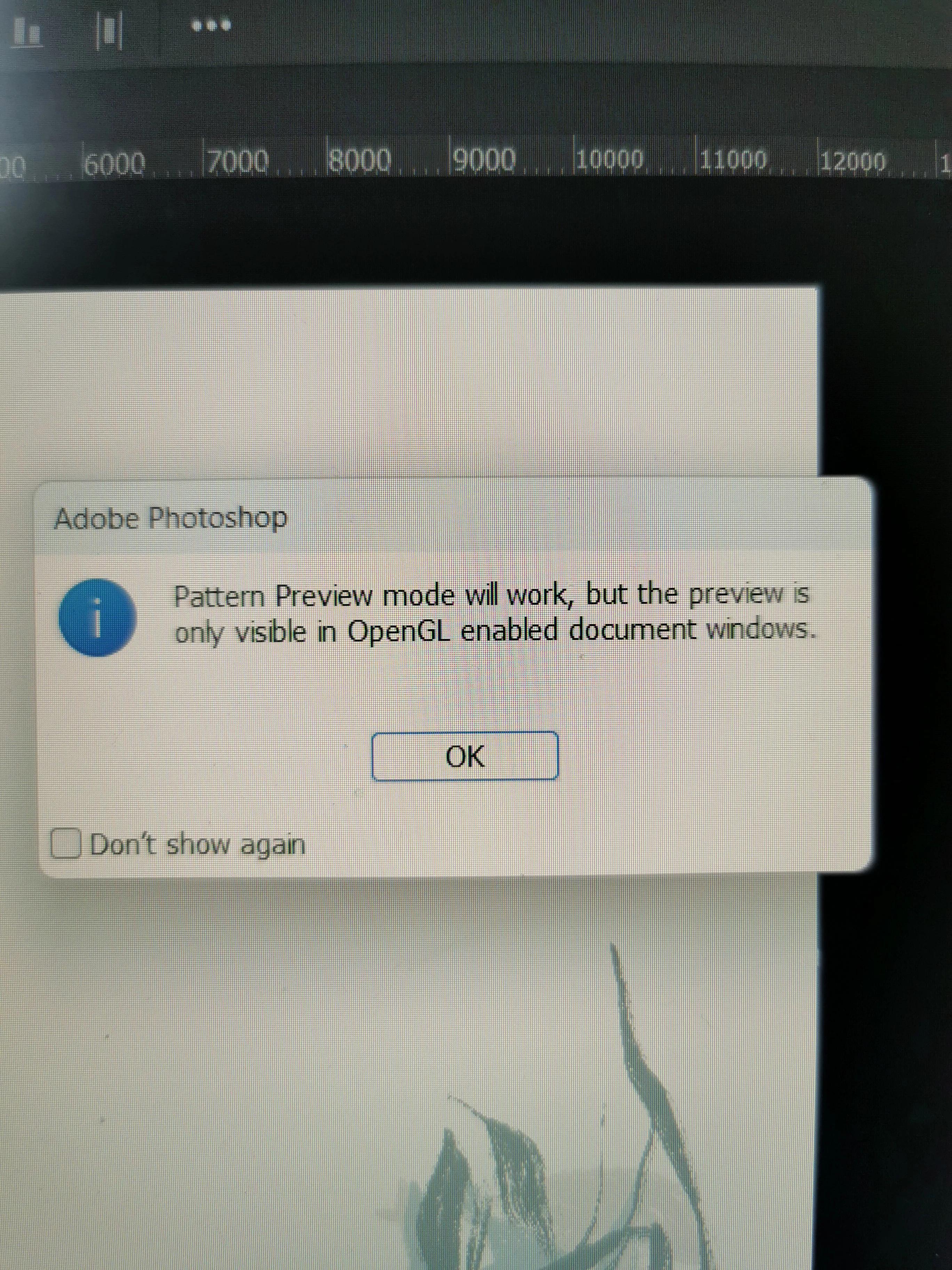 When I click the pattern preview button a box appears (see photo) "Pattern Preview mode will work, but the preview is only visible in OpenGL enabled document windows. "