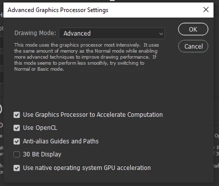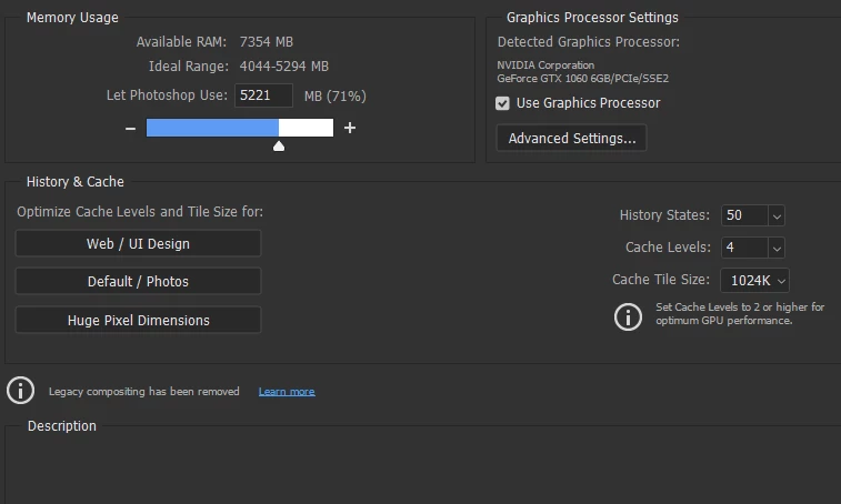And this is what is in performance options in Photoshop: