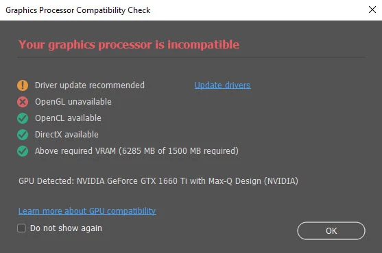 OpenGL unavailable after update to Photoshop 2022