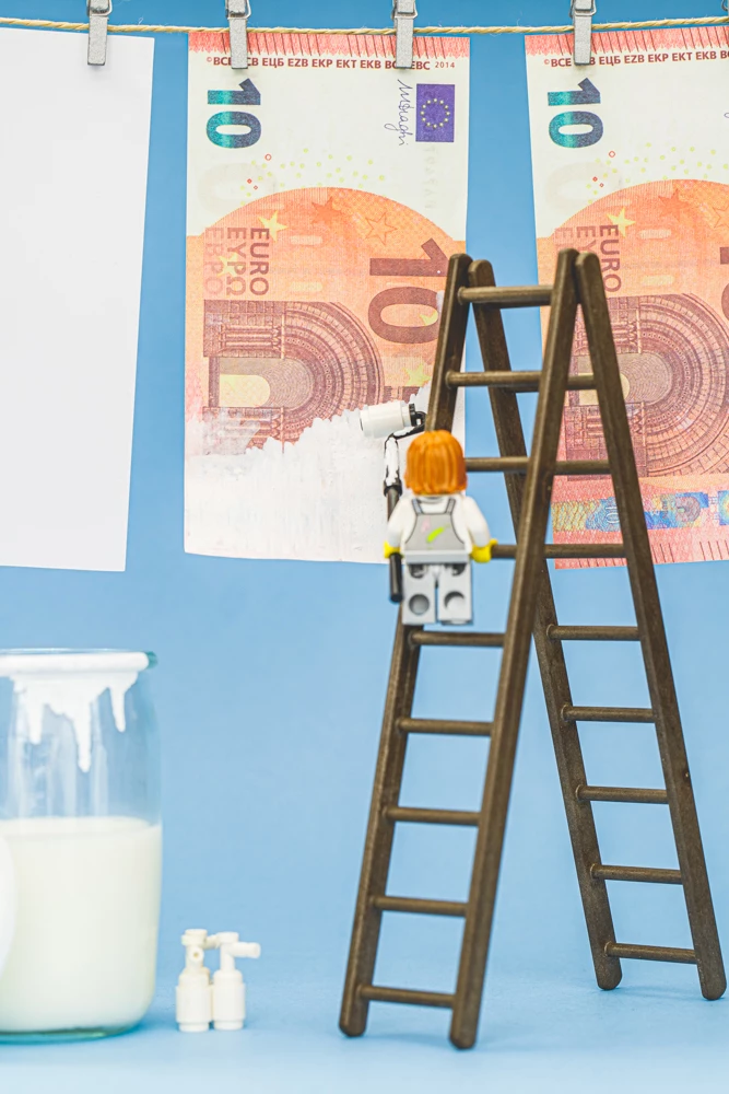 I have one with a minifg painting a Bank Note with white paint to illustrate "Money Laundering" (in French Make Money White)