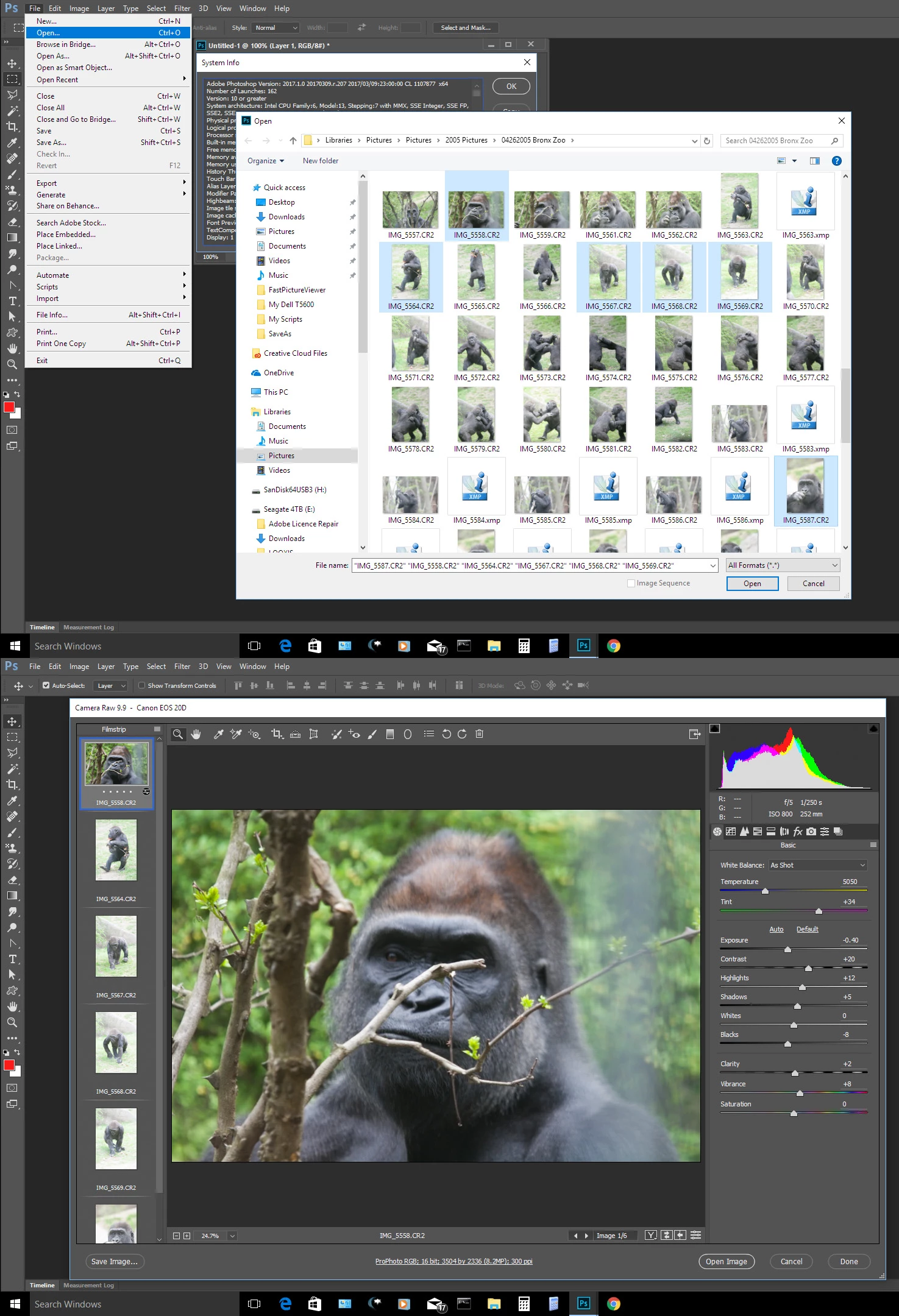 Opening multiple RAW files in Adobe Photoshop CC