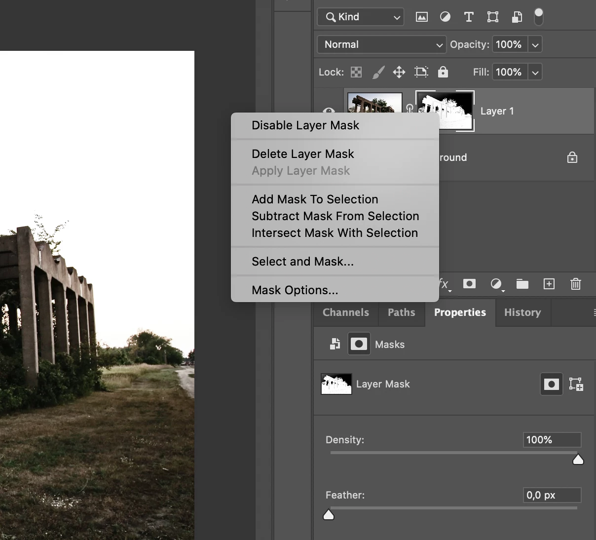 Does someone know why option 3 " apply layer mask " is not active.