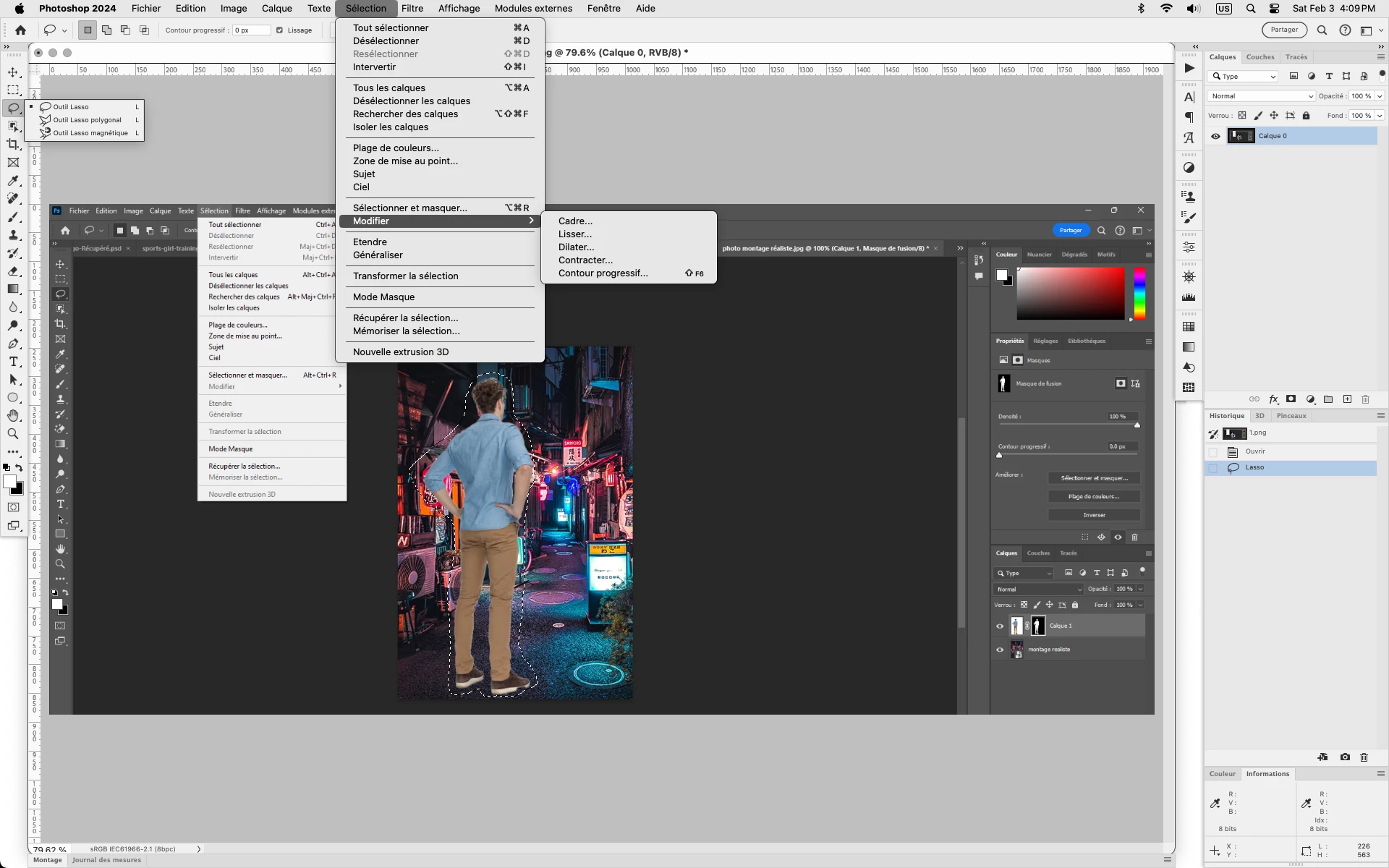J'ai effectué une séléction de sujet sur une photo et lorsque je tente Séléction --> Modifier, Modifer est grisé.