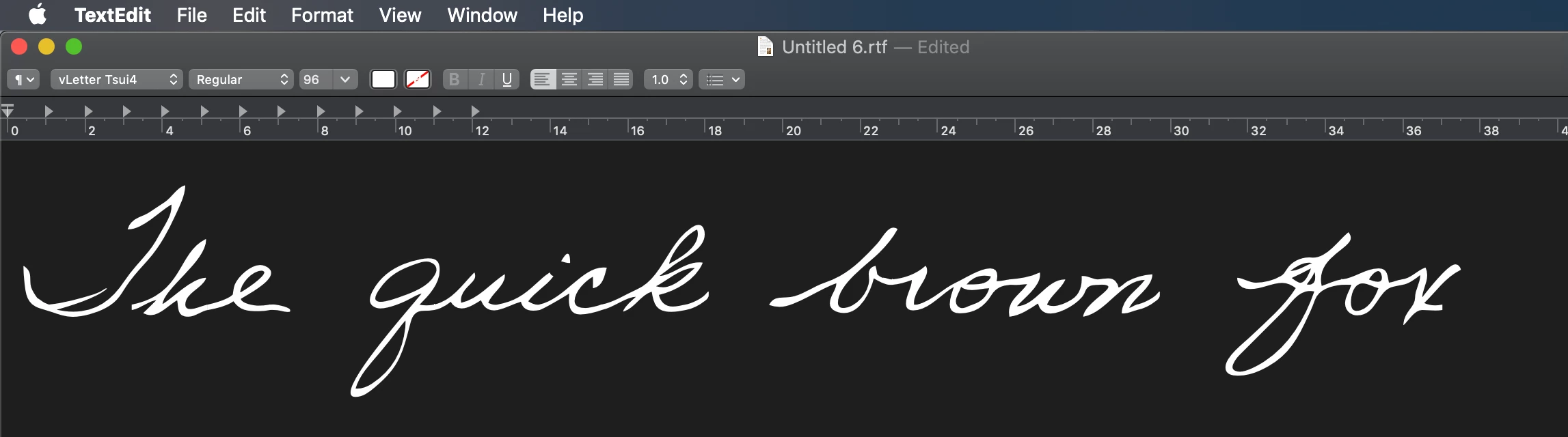 But in TextEdit or any other OTF-supporting app, the tails appear as expected, like below: