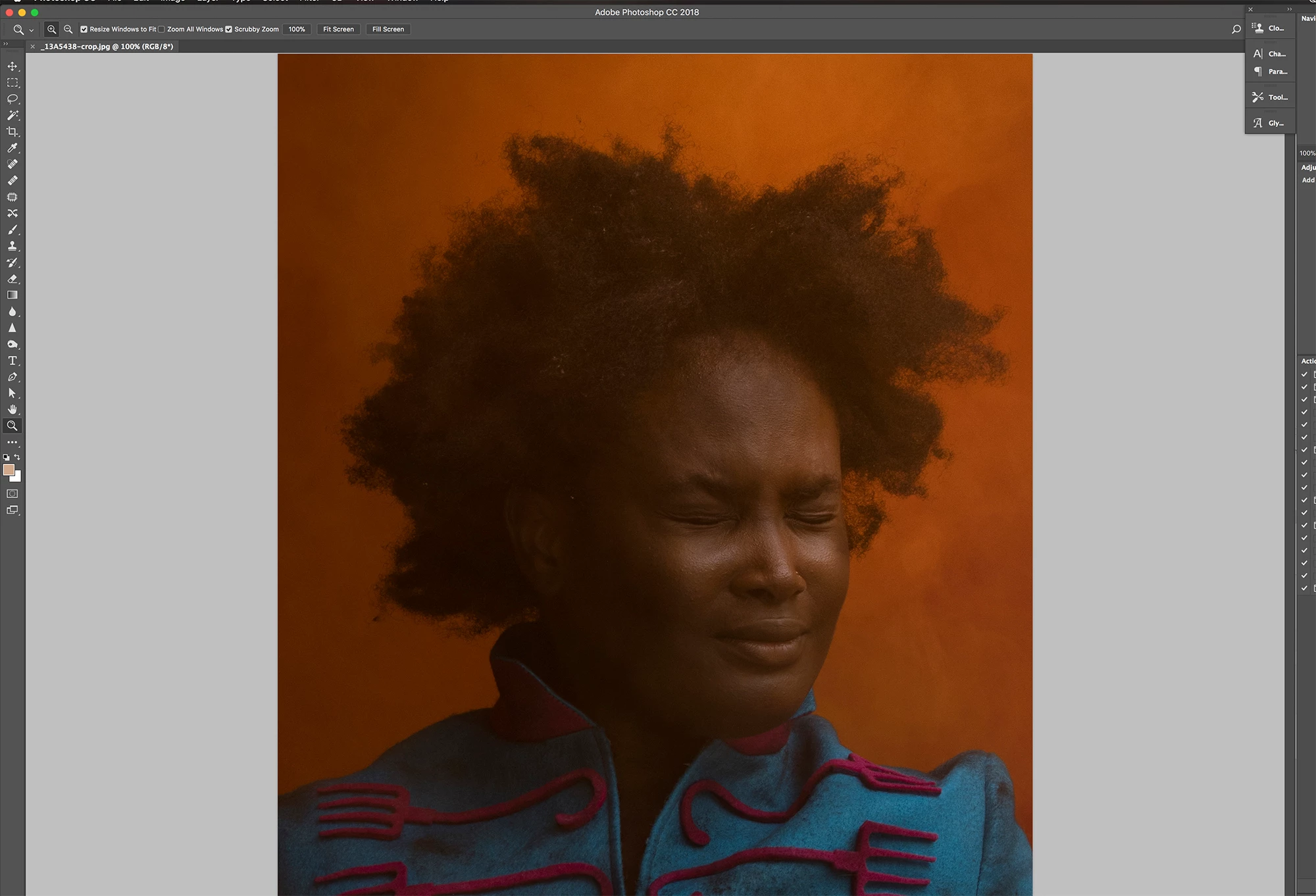 Sorry to bug you again, but another strange thing is happening. My image in this screen grab is at 100% but all of it isn't contained on the screen. The lower 15% or so of the image is cut off and I'm not able to scroll up and down.
