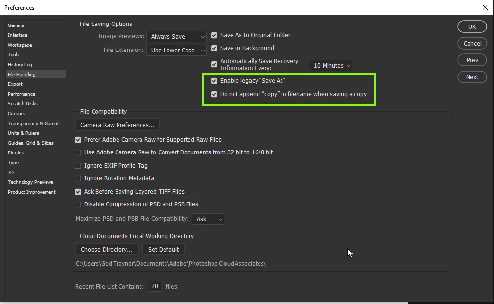 To quickly summarize, you will now have the option to revert to the legacy “Save As” workflow (from before recent changes) on both macOS and Windows. Enabling this preference will make both the “Save As” and “Save a Copy” commands operate within the same “Save As” dialog box with all its previous options, including the “as a copy” checkbox. The only difference between the two commands will be whether the checkbox is automatically selected (when using “Save a Copy”). Additionally, you will now have the option to not append copy when saving a copy. On macOS, if you enable the legacy workflow, the option to not append copy will be forced ‘on’ due to the changes made in macOS 10.15 and later. On Windows, the two preferences will operate independently.