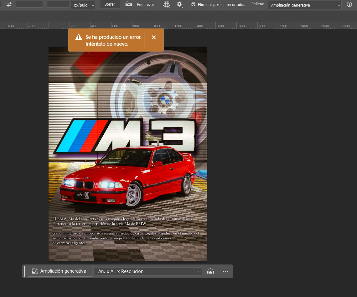 Every time I try Generative expand or fill the progress bar pops up, gets 1/3rd of the way through then it errors out with a message that says "Something went wrong, please try again"
