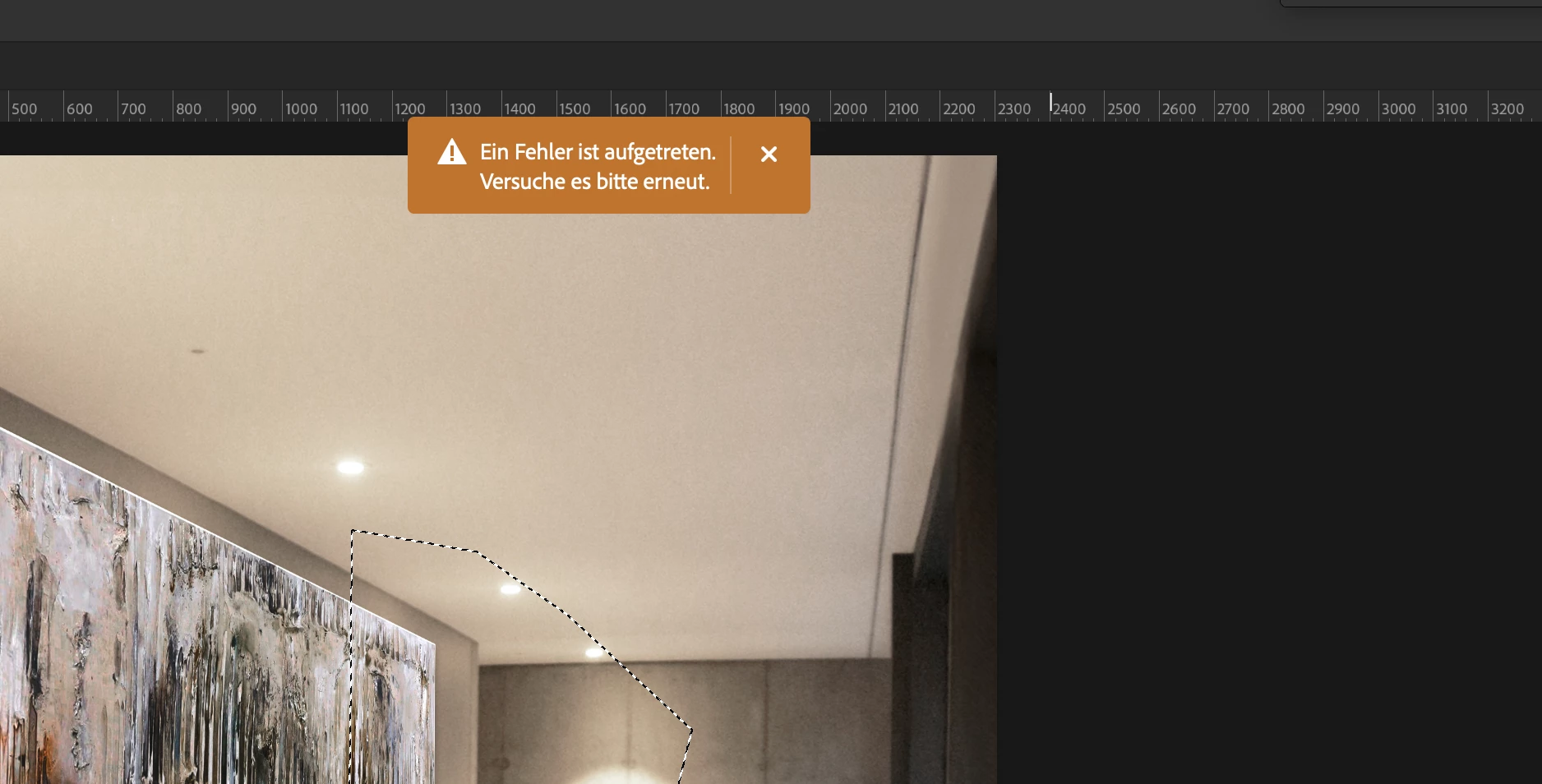 Das Tool - Generative Füllung - arbeitet nicht. Ich bekomme immer nur die Fehlermeldung "Ein Fehler ist aufgetreten. Bitte versuchen sie es erneut". Was kann ich tun?