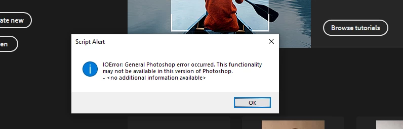 All time take error mesage. When I open a photo from LR throws an error . : Script alerts - IOerror ,