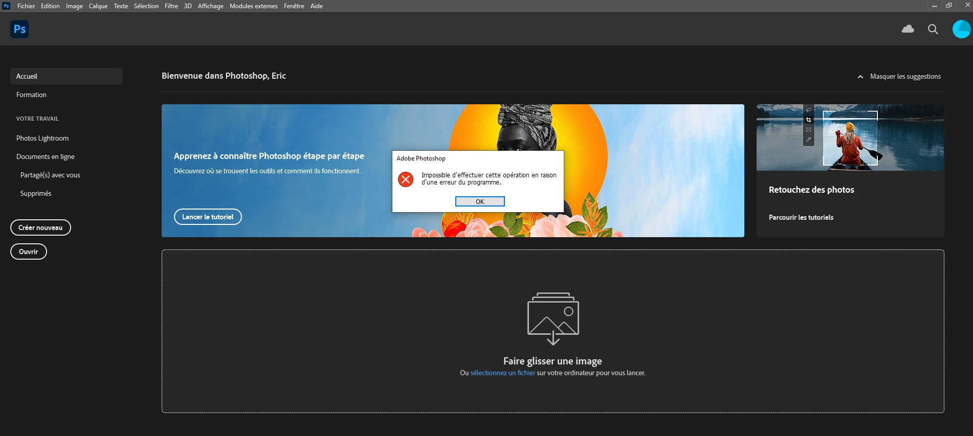 Depuis plusieurs jours, je ne peux plus ouvrir Photoshop.