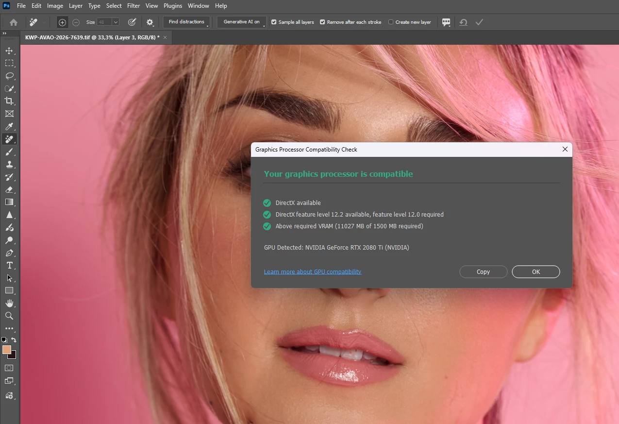 I’m running the tests with everything set up exactly how I normally use Photoshop. There are no new Windows updates, and I also checked that my graphics card is up to date.