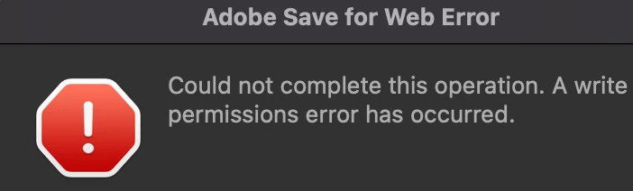 P: Save For Web error A write permissions error has occurred Photoshop 22.1.1