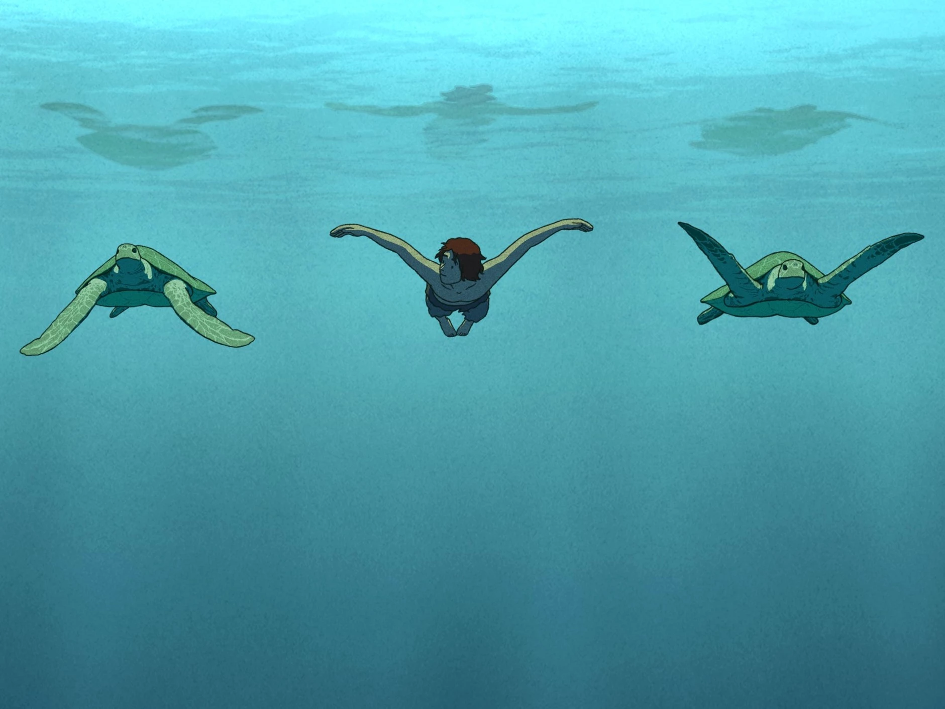 How can I paint Underwater Sea, like in this still from a film called 'The Red Turtle'.