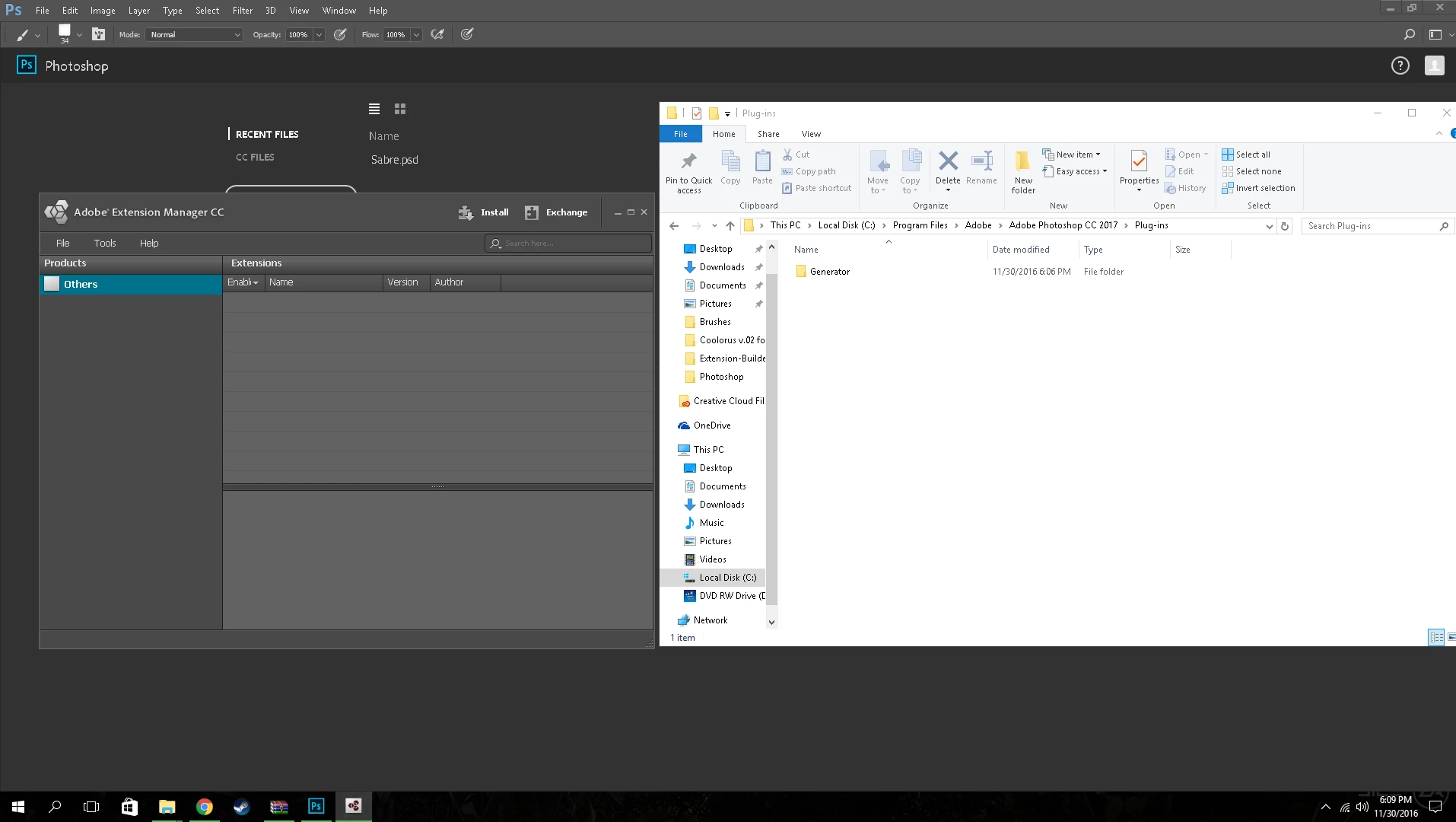 in thispc/C:/Progamfiles/Adobe/AdobePhotoshop CC 2017/Plug-ins