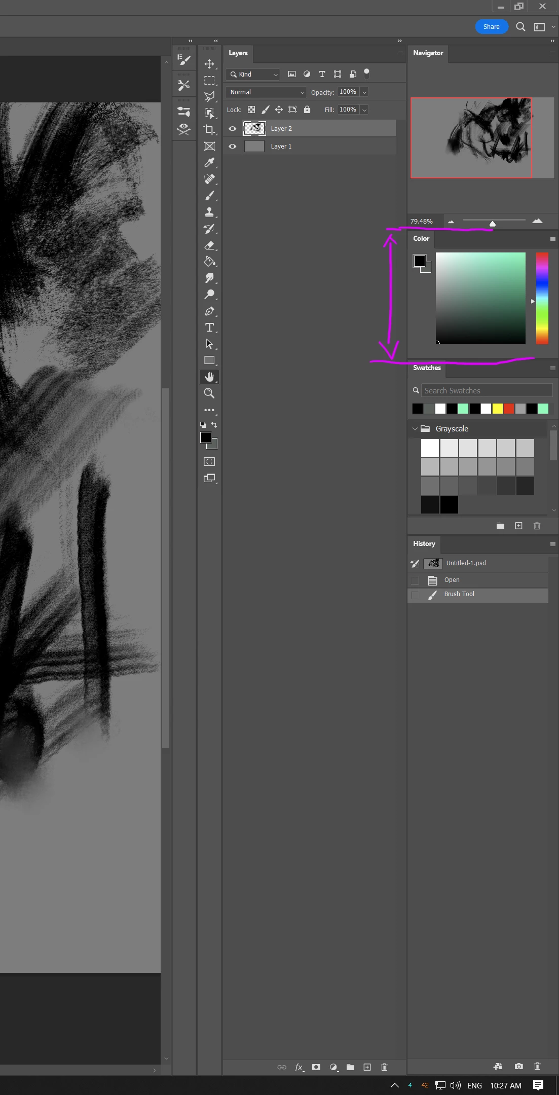I have opened panels docked in vertical strips (for example, Navigator, Color, Swatches, and History in one vertical strip), and I drag the dividers between them to get the sizing I want. But often Photoshop will resize them, even if I lock the workspace. It's extremely annoying because I have to waste time to drag those dividers again to get the panel sizing I want. This has been happening for a while--maybe a year or so, and with multiple versions of Photoshop (I try to keep it updated to the latest version).