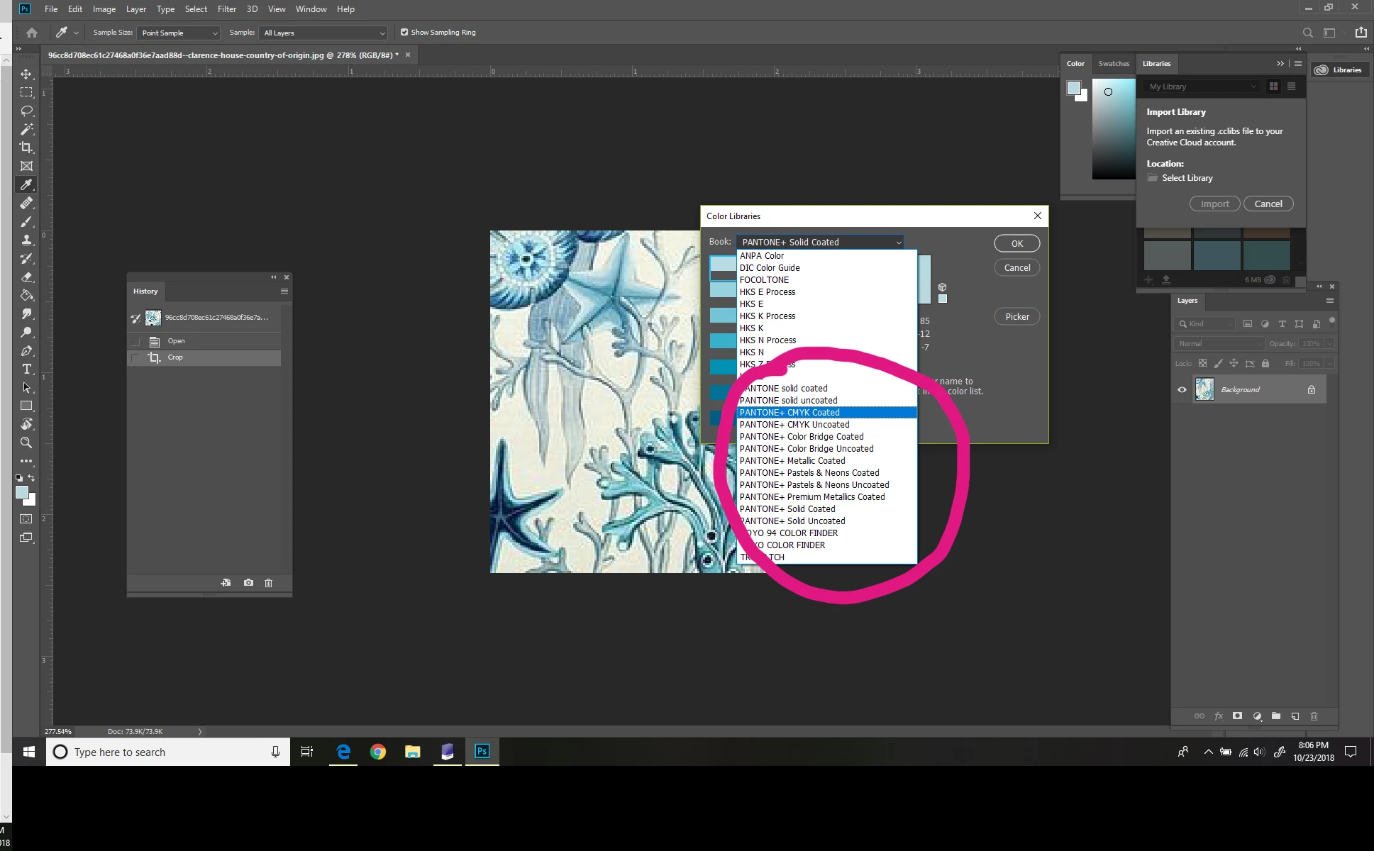 Pantone Color Library not available in color picker