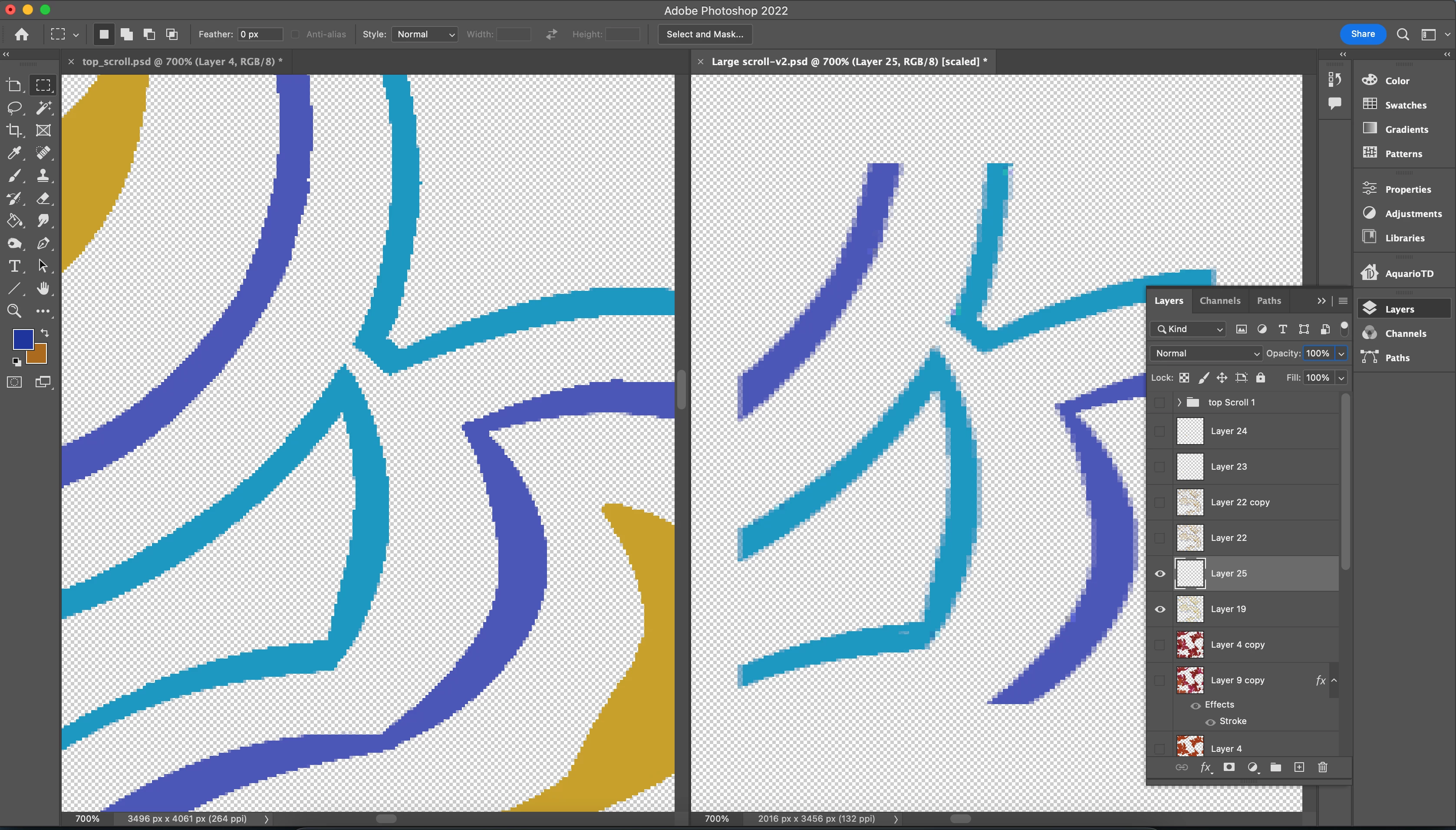 I have an image that's been created using a RGB format with multiple layers. I'm trying to copy and paste from another simple shape that has solid colours but the edges paste as blurry.