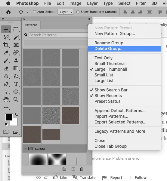 I have a recurring problem with Photoshop pattern file getting corrupted / full and overloading the system so that it stalls when trying to open or shut, when reading preferences. One agent deleted the pattern file for me and that helped until the pattern file got overloaded again. There must be a way to empty that file from time to time. Please advise. Thanks. I am a surface pattern designer, so this is critical.