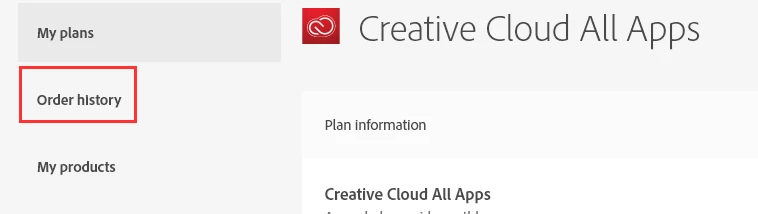 Click on Manage your Account then either View Plan Details or Register a Product and then on the Order History link.
