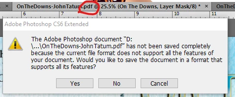 I have just saved a print-ready pdf out of Photoshop. The file re-opens in Photoshop. When closing/saving that PDF file I get this message about the file " .. not been saved completely because the current file format does not support all the features of your document ..."