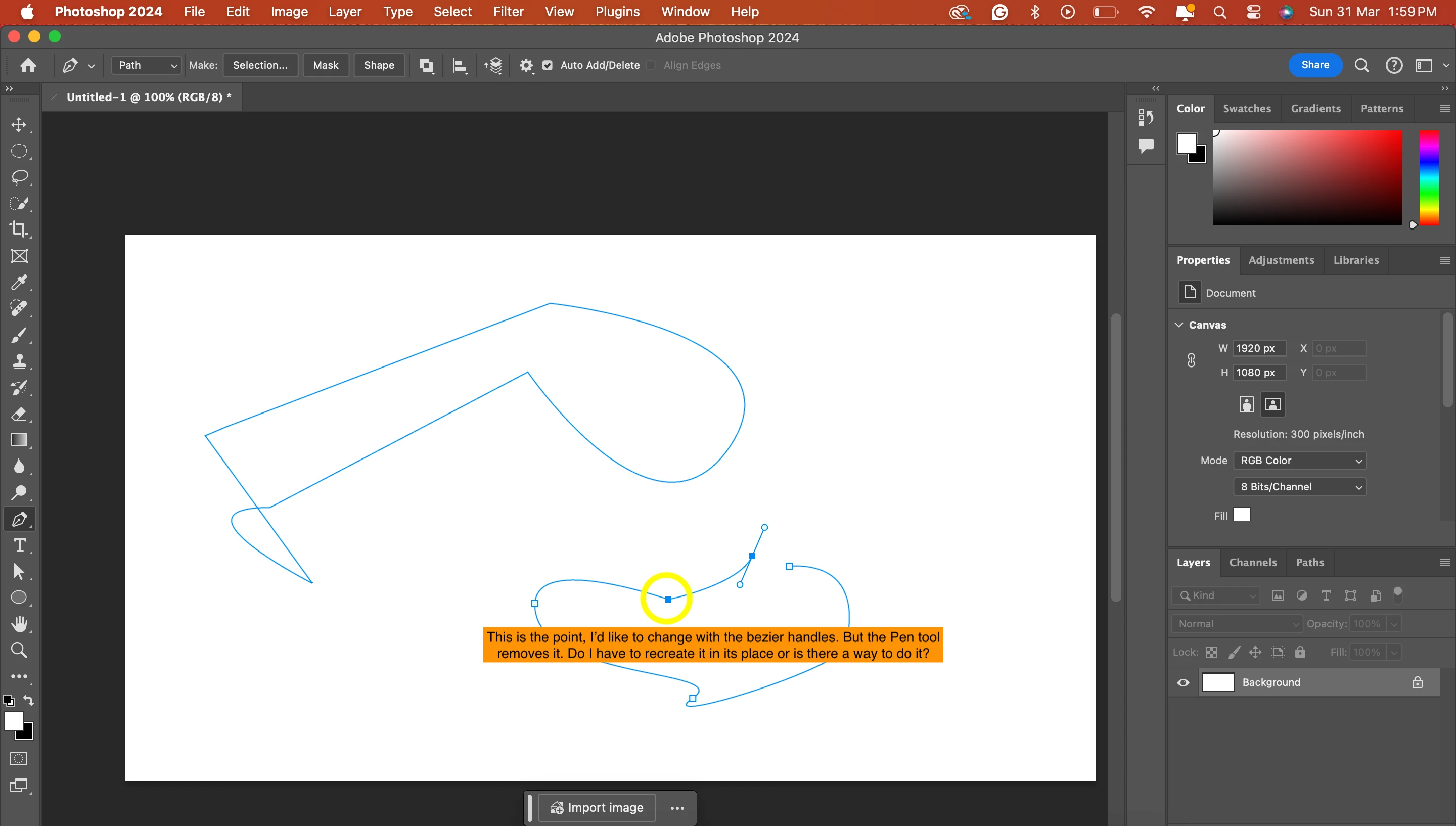 I've been trying to master the Pen tool but seem to have hit a basic roadblock. How do I get the two handles on the latest point after releasing the click?