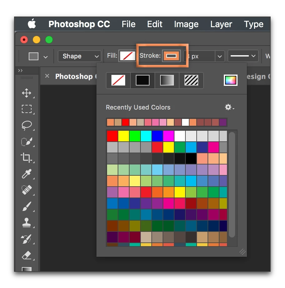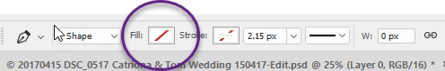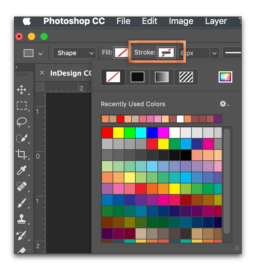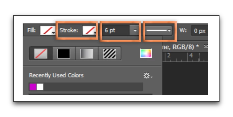 Your options bar will change from the red slash to the stroke colour