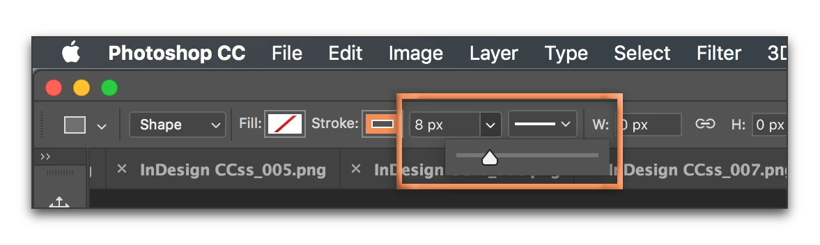 Click on the current width (your screen shot shows 6 pt, mine shows 8 px) and pick your width.