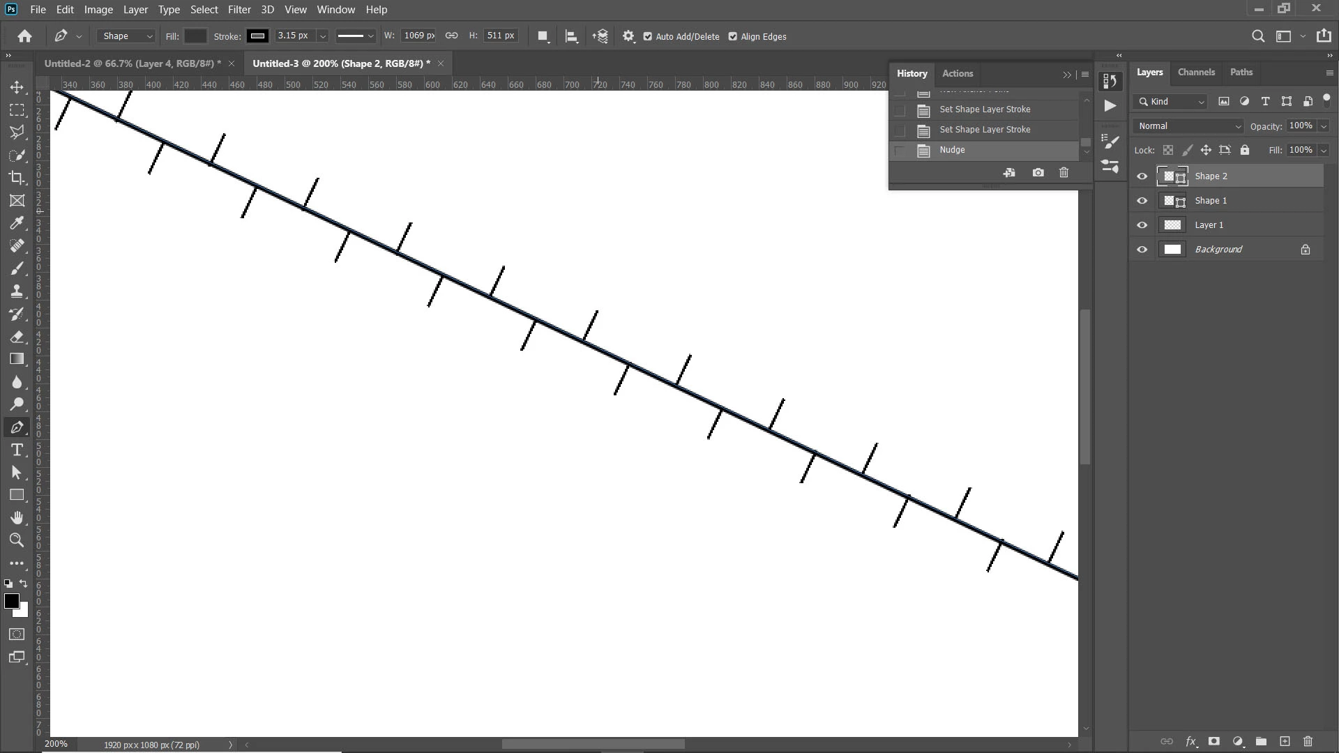 Is there a way to draw lines with PS CS pen tool as follows:
