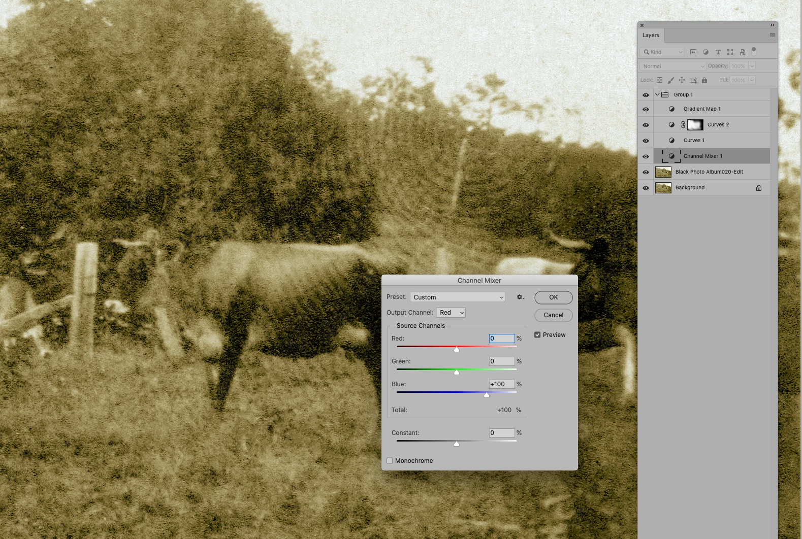 I have a scan of an old photo that is heavily marked by dark fingerprint lines. Is there a way in photoshop to remove these lines without changing the detail and underling color. I have tried using the Spot content aware healing brush, but this is slow and tends to lose detail by smearing things out. I have also tried using the Remove Dust and Scratches filter with the History brush lighten but this also produces a less than ideal result. I find with many of these old photos they can get either dark or milky stains which are hard to remove without just smearing everything out, even the clone and patch tool are not much use in many cases. Can anyone suggest a different technique from those above. Attached is an example of the image marked by fingerprints.