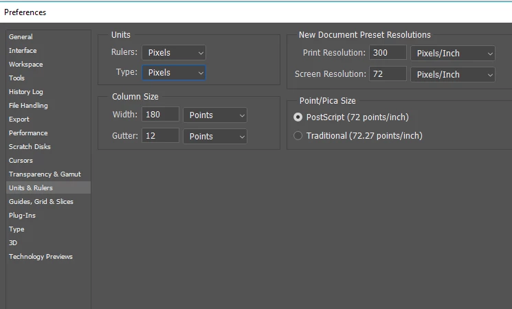 Alsop look at Preference units. I suspect that Rulers might be in Inches.  I like to to use pixels, but YMMV (it's a while since I last used that  olde worlde internet short hand )