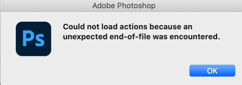 Photoshop 2020 (21.2.3) not opening - unexpected end-of-file on macOS 10.15.6
