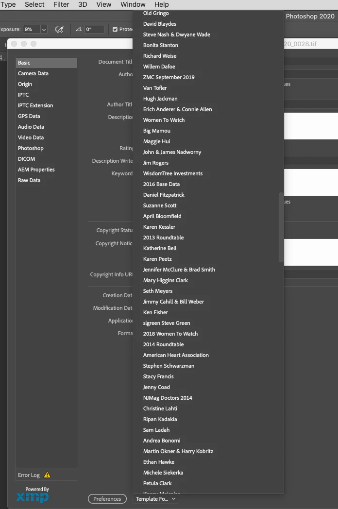 Photoshop 2020 Bug - File Info/Metadata/Template Folder Non-Alphabetical Random Order