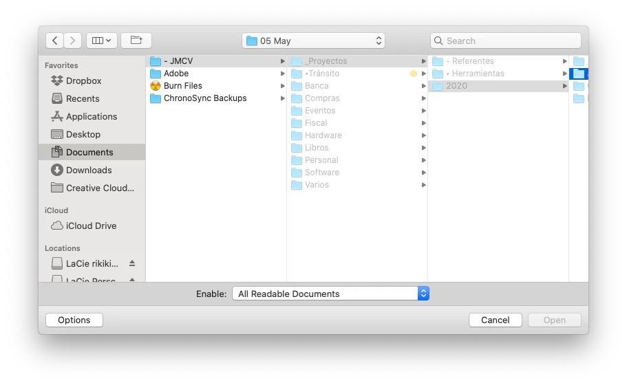 If I wait long enough, some files will eventually "fill in" as viable instead of greyed, but even there, the behavior is inconsistent: some only activate if I select them directly. The lagtime is disconcerting considering the processing speed of my laptop. It's like the app has to index my menus and determine file types every time I do an open from the app.