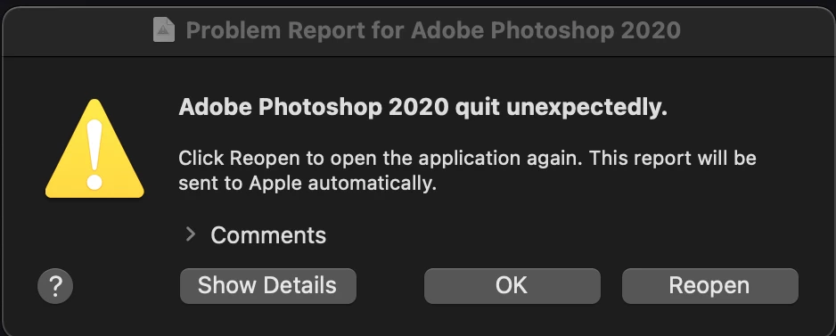hi! when i try to open ps it gives me this error every time so im wondering why because i even restarted my mac. thanks !