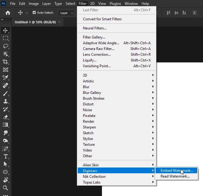Error code when I try to open digimarc in Photoshop 2021. 22.01. I have the plug in but photoshop gives me an error code. I go to filter and no digimarc please help