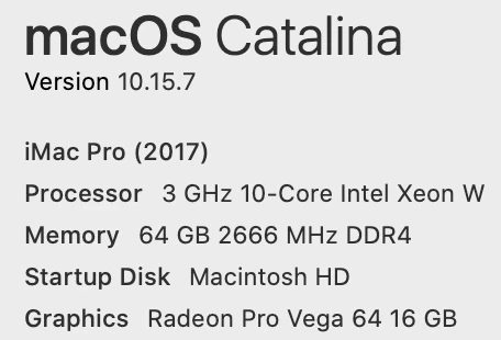 Same Problem. 2019 iMac Pro, Radeon Pro Vega 64.