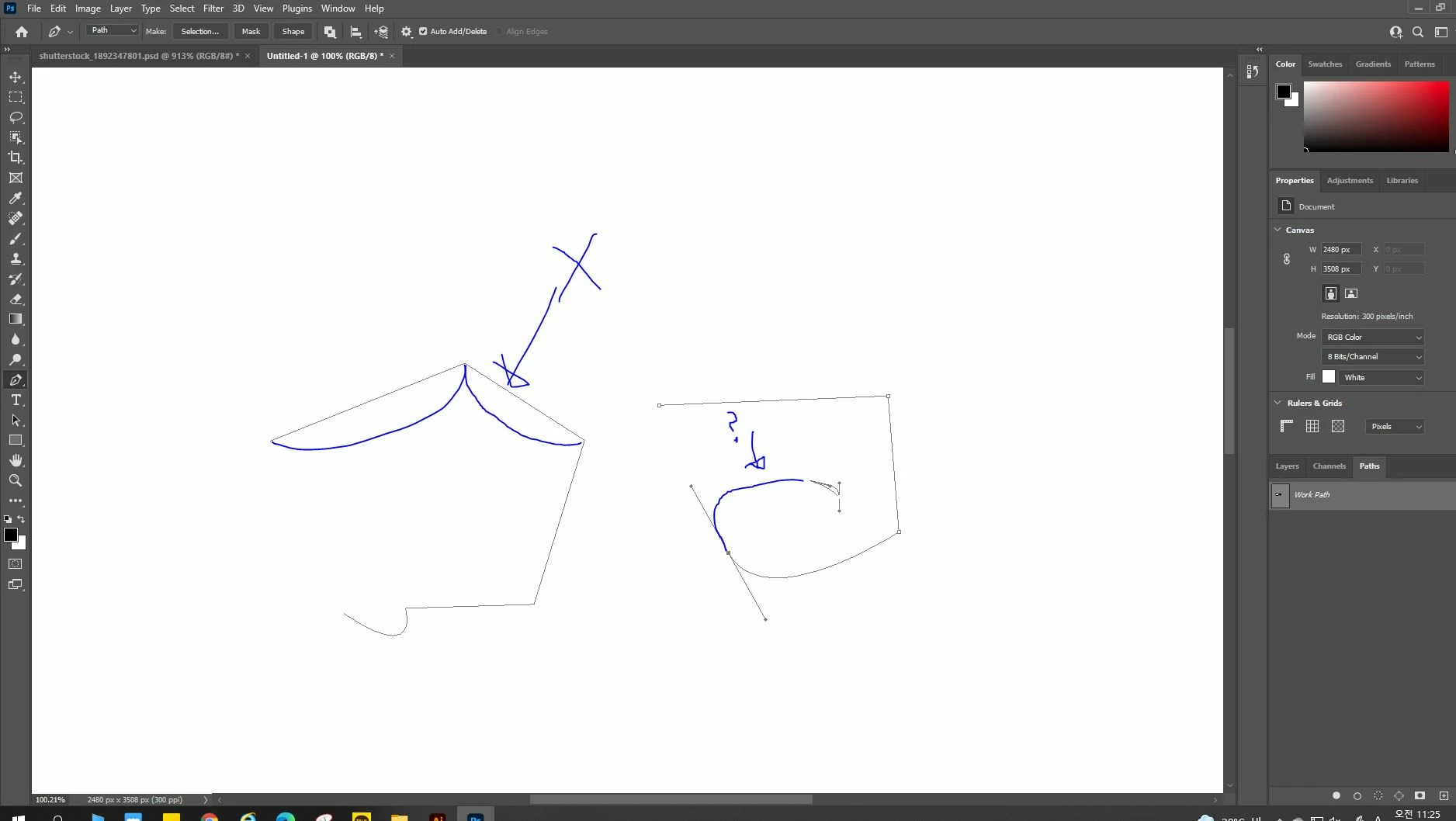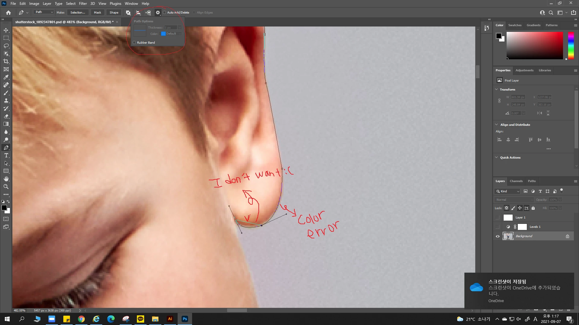 photoshop 2021: Please!! help me :( Pen Tool path curve guide error 어도비포토샵 펜툴 패스 곡선 시 이상한 가이드가 생겨요