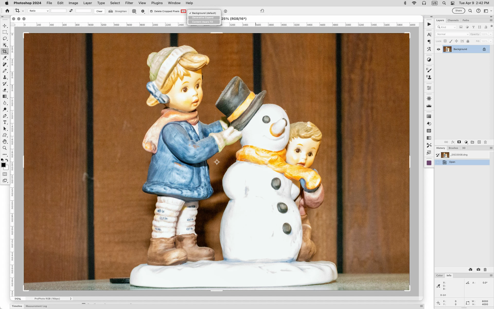 Depuis que j'ai Photoshop 2024 et Lightroom, je ne peux plus utiliser l'outil recadrage en mode agrandissement sans que l'IA complète l'image en générant du contenu.