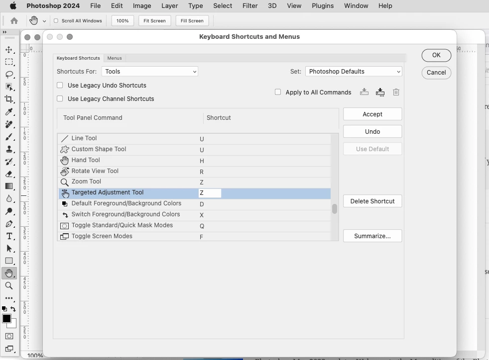 Photoshop 2024 (ps ver 25.0) Tools Keyboard Shortcuts