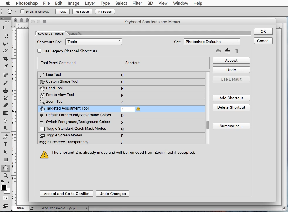 Keyboard Shortcuts for Tools in the Tools Panel, Photoshop does not warn of