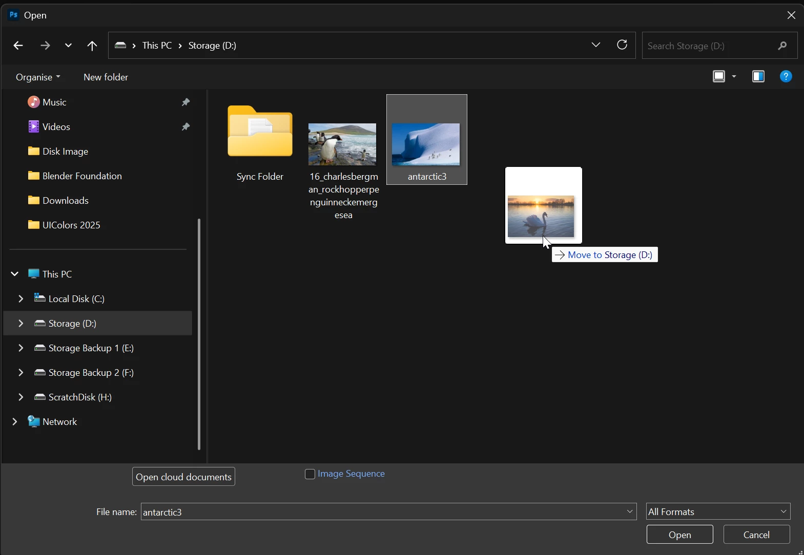 Photoshop 2025 — Unable to drag & drop files inside the “Ctrl + O” (Open File Dialog) window